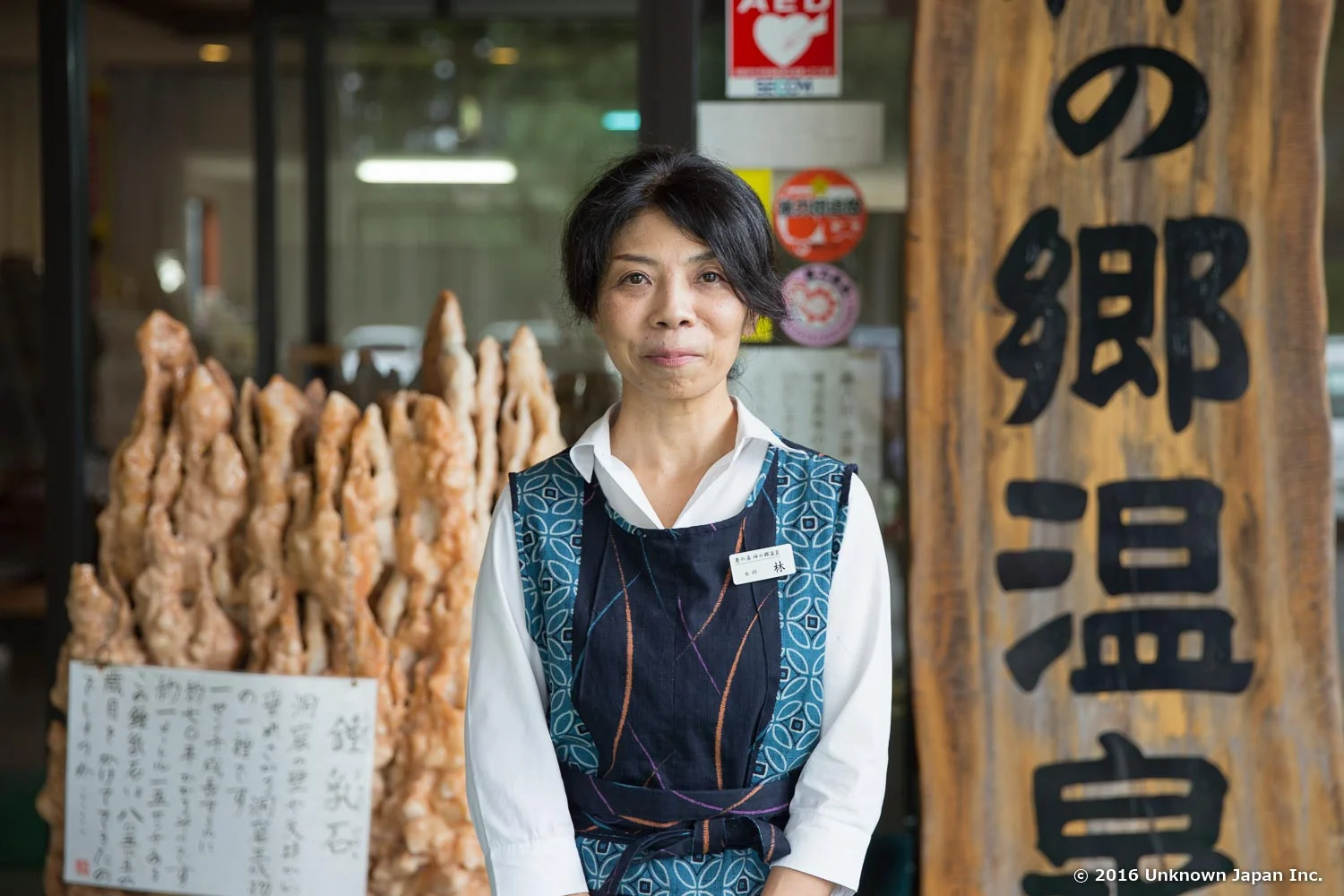 She is the manager Kumi. She says visitors come from various places such as Miyazaki, Kagoshima or Hitoyoshi as well as Kobayashi. Several hundreds of people come daily on average, and more than 1000 people came on New Year’s Day some years ago.