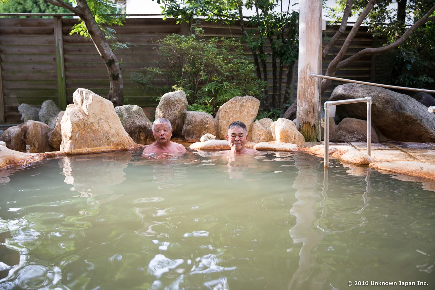 They are frequent bathers Yoshitoshi (right) and his friend. Yoshitoshi has been coming to Megumi no yu since it opened. It’s lucky to have such a good hot spring in a hometown.