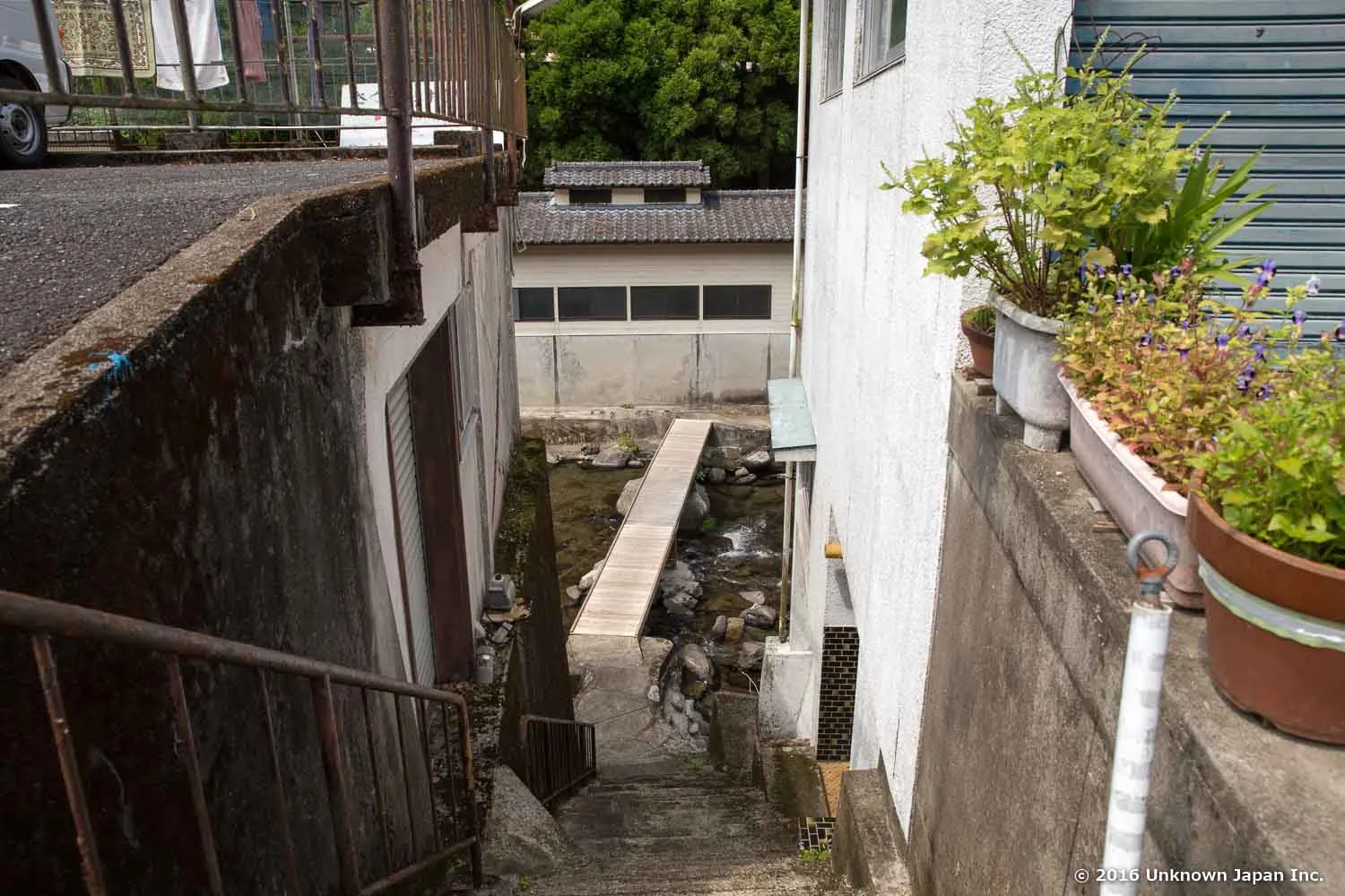 We visited Yunotsuru Onsen “Kiku no yu” in Yude, Minamata, Kumamoto. The address “Yude” (湯出 in Japanese which means “hot water coming out”) indicates this location has a deep relation to hot springs. The route to Kiku no yu is difficult to find, if you find the path on the picture above, go downstairs to get to the onsen.