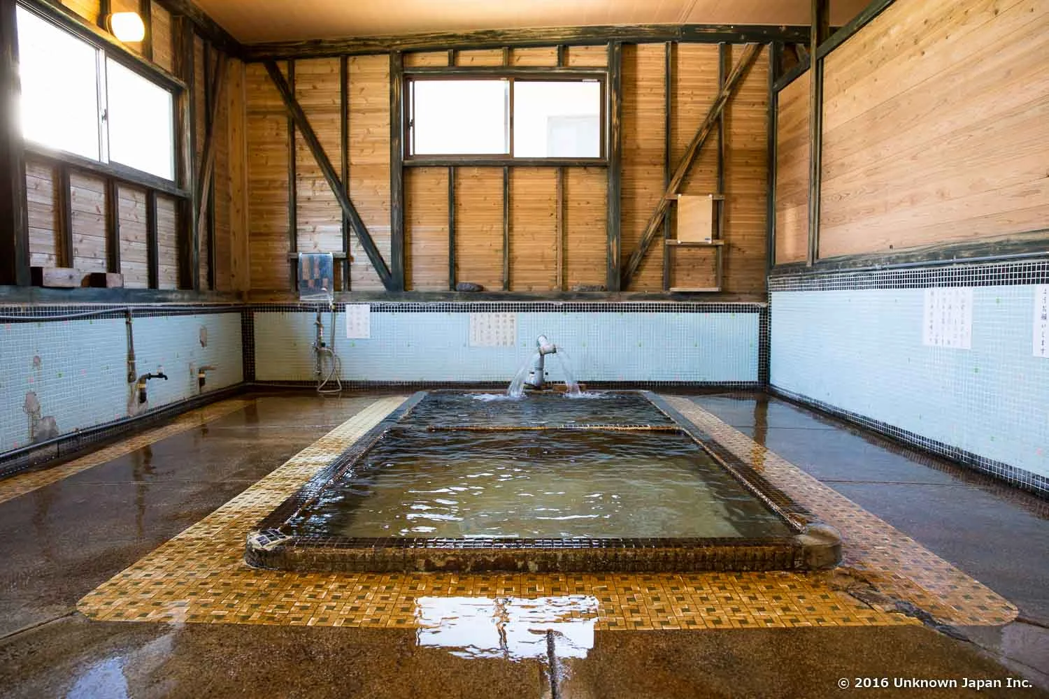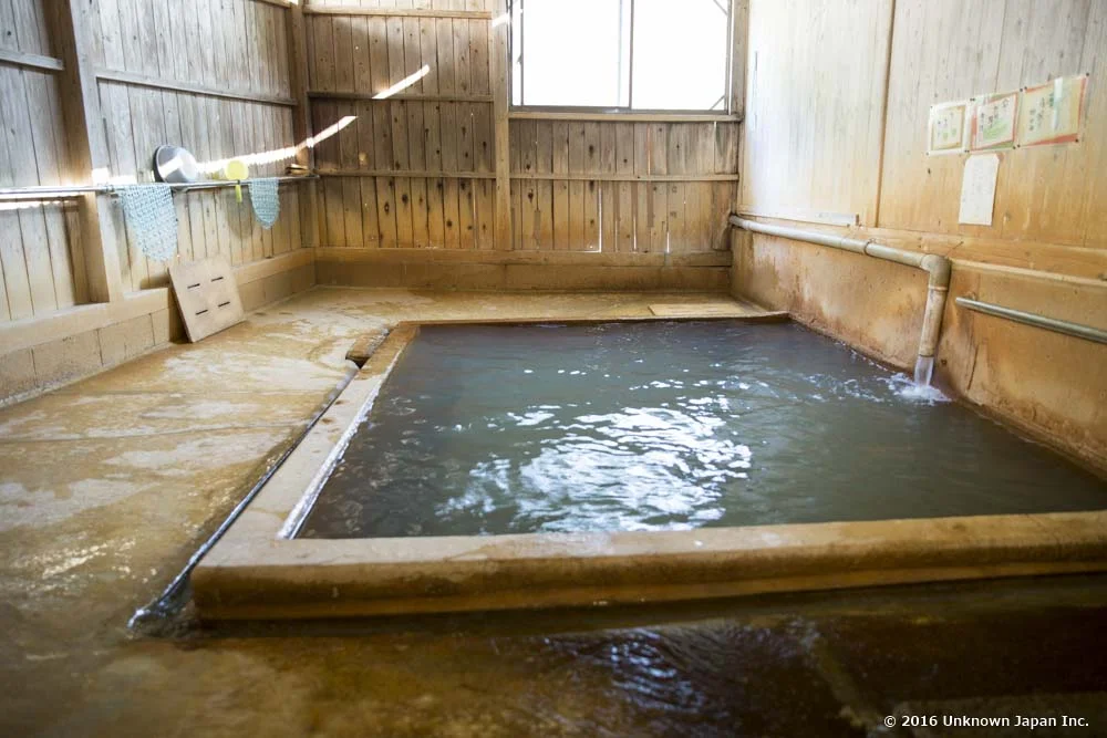Muranoyu Onsen is an old bathhouse and is nicely aged. It opened in 152 years ago at the centre of a rice paddy field. It has a long history and Takamori Saigo visited here in 1874. The hot spring water color changes daily depending on the environmental conditions. For example, it can be dark brown as shown in this picture or milky-white on some days. This shows that the water is 100% pure natural and not artificially modified.